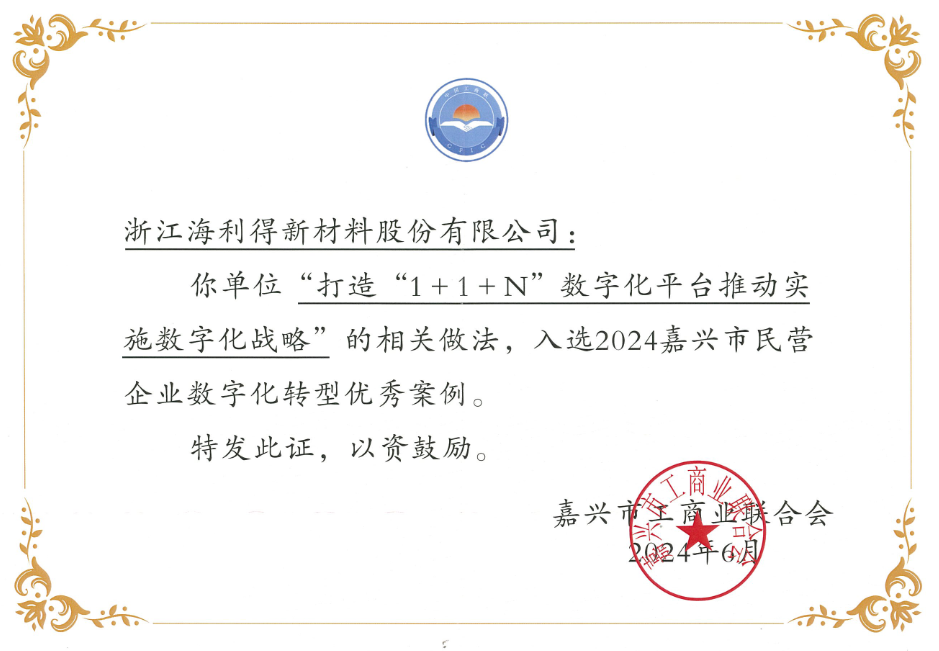 公司入选2024嘉兴市民营企业数字化转型优异案例