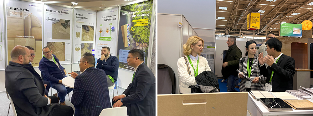 参展时代, ,,,,,,今年会官网团队共接待了近百家国际客户, ,,,,,,SPC墙板、PVC/ Nov-PVC地板备受新老客户的关注, ,,,,,,众多客户明确体现了对产品的强烈兴趣。。。。。 。阻止现在, ,,,,,,今年会官网团队已经与凌驾70家客户通过邮件、电话等方法建设了联系, ,,,,,,并与10余家客户确认了旅行工厂的妄想。。。。。 。